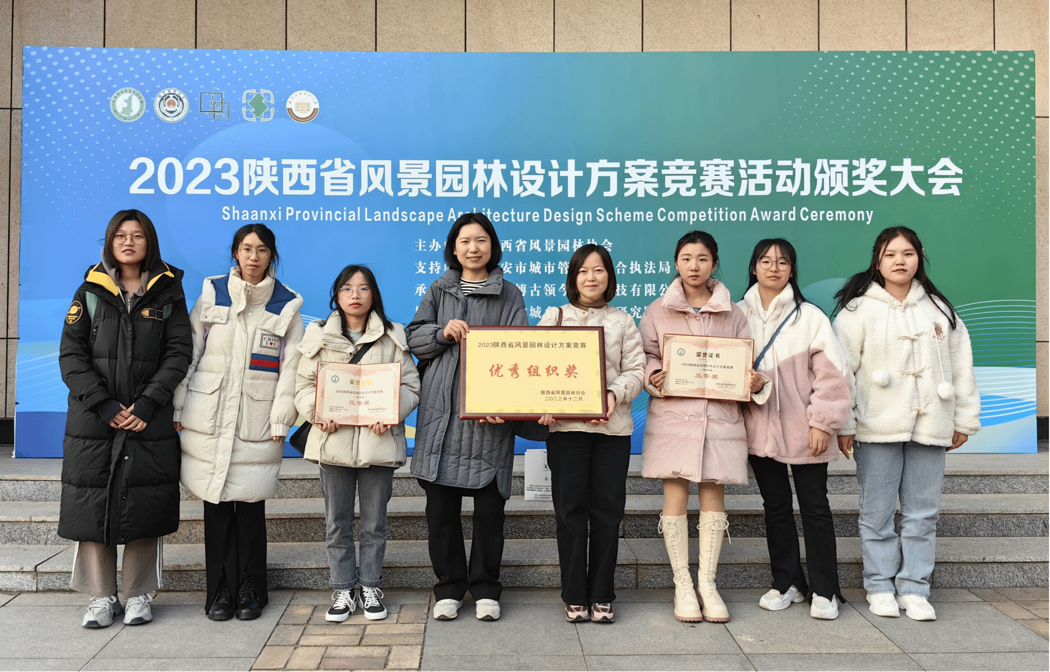 2023年12月2日,陕西省首届风景园林设计方案竞赛颁奖大会在西安建筑科技大学举行。本次竞赛活动共有769名选手报名参赛,提交了194套设计方案,公司园林系高洁老师和强方方老师指导园林专业员工朱静、党碧荣、贾兴月负责的设计方案《流光之境》和蔡梅、张柏宇、胡佳佳负责的设计方案《智灵绿野公园》均荣获员工组三等奖,公司同时被大会组委会授予“优秀组织奖”荣誉。