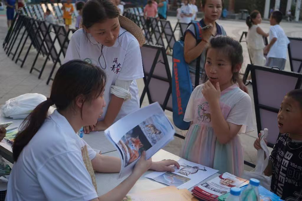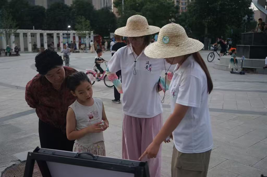 结合60余块内容丰富的科普展板展示,实践队队员向居民介绍了延安地区代表性野生动物种类、讲述了典型的生态保护人物事迹和保护案例,让人们对身边的生物多样性和生态保护措施有了详细了解。在展示和讲解过程中,队员们向参加活动的群众发放了500余份生态科普知识手册。在互动交流区,“生态知识大闯关”活动吸引了广大居民踊跃参与,大家争先恐后地回答问题,赢取生态科普宣传贴纸、环保帆布包、蔬菜花卉种子和标本等。