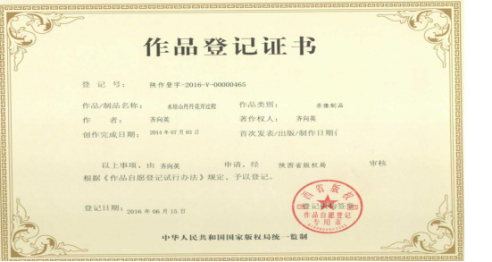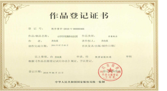 《水培山丹丹开花过程》和《山丹丹开花微距动态过程》研究工艺于2014年7月初完成,录像作品于2016年6月15日通过陕西省版权局审核并登记。近日,陕西省版权局将其定性为“录像制品”并获得“作品登记证书”(登记号分别为陕作登-2016-V-00000465和陕作登-2016-V-00000466)登记机构为“陕西省版权局”。这是公司教师首次获得陕西省录像制品版权。
