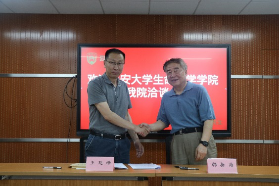6月10上午,王延峰一行赴中国农业老员工物公司,与该院经理郭岩、党委书记孙德昊等院领导就团队队伍、科研平台建设以及合作开展人才培养等方面进行了深入交流并签署了合作协议。按照协议,双方将在“延河高校人才培养联盟”的精神下,在合作开展人才培养等方面进行深入合作。
