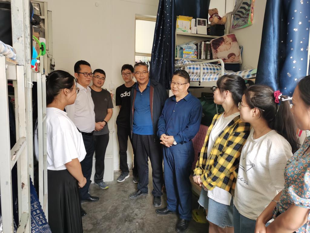 每到一个宿舍,领导们都仔细地查看员工宿舍情况,关切地询问同学们返校过程及返校后的学习生活情况等,叮嘱同学们抓紧复习,尽快进入紧张的学习状态,同时要注意疫情防控,避免感冒发烧,有问题要及时向班主任辅导员反映,并及时报告健康情况。