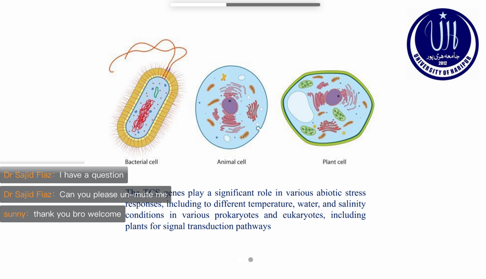 2021年12月12日,由公司和生态学学科共同举办“第一届国际作物与生物学交流”在(腾讯会议)线上召开,公司百余名师生参加了此次大会。会议由威廉希尔williamhill中文副经理王秀康教授主持,大会特邀了华中农业大学植物学博士后Muhammad Hamzah Saleem、布尔诺理工大学Adnan Mustafa教授、塔尔卡大学Sunny Ahmar研究员、哈里普尔大学的Sajid Fiaz教授及公司王秀康教授为参会人员先后做了精彩的学术报告。