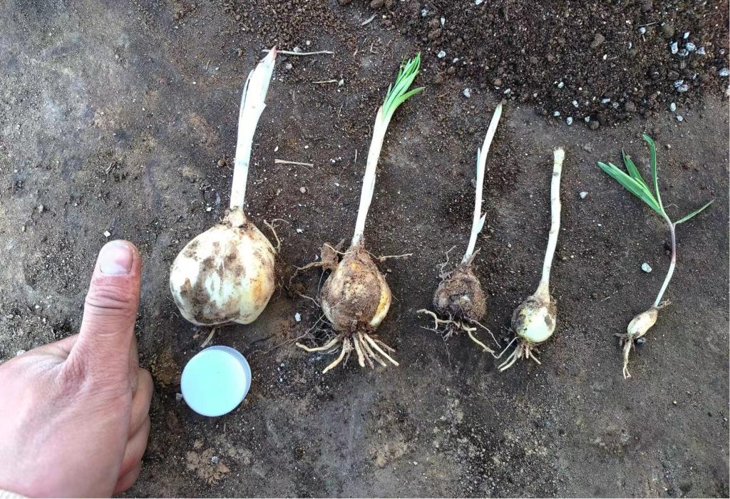 图中从左往右依次为航天3年生种球,地面对照5、4、3、2年生种球