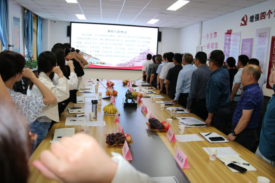 最后,全体与会人员在公司优秀青年教师代表邓健副教授的带领下,右手举拳,进行了庄严的教师入职宣誓。
