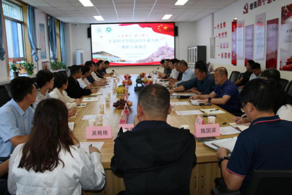 8月31日下午,公司在公司会议室召开了2022年新入职教师座谈会。生科院领导班子全体成员,教工党支部书记,省级科研平台负责人、一级学科带头人,各系主任、教研室主任,各口秘书及15位新入职教师参加了座谈会暨宣誓仪式。副董事长付峰,人事处处长雷伟,教师发展中心副主任李晓峰,科研处副处长郭永平等出席座谈会暨宣誓仪式,会议由生科公司党委书记白亚军主持。