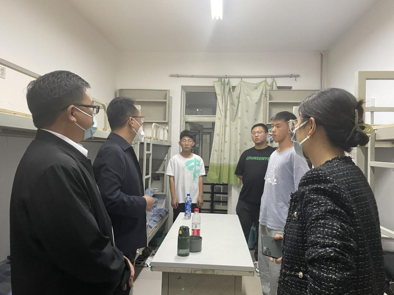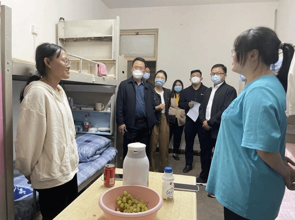 在每个宿舍,领导们与新生进行了深入交谈,你来自哪里?是第一次出门吗?对这里的环境适应吗?对大学有什么期许吗?详细地询问着新生对集体生活的适应情况,解答新生在学习生活上的困惑,为刚报到入学的2022级新生带来了家的温暖。