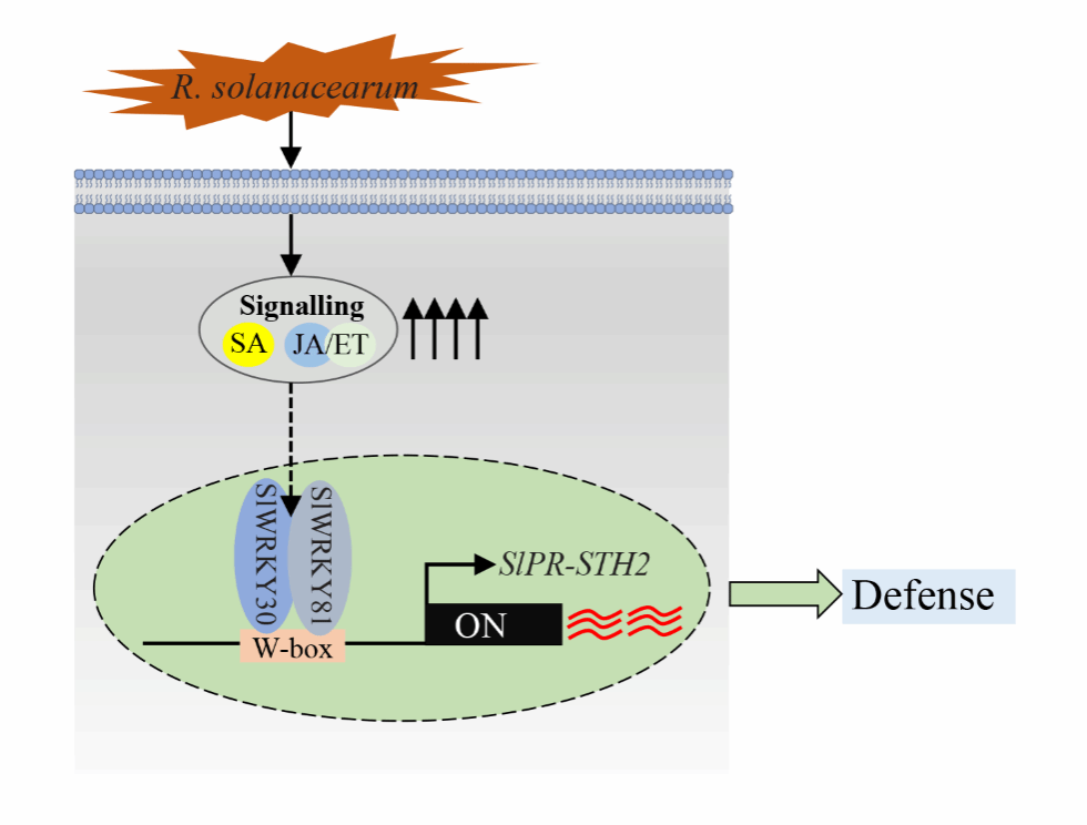 图:SlWRKY30和SlWRKY81协同提高番茄青枯病抗性的模式图