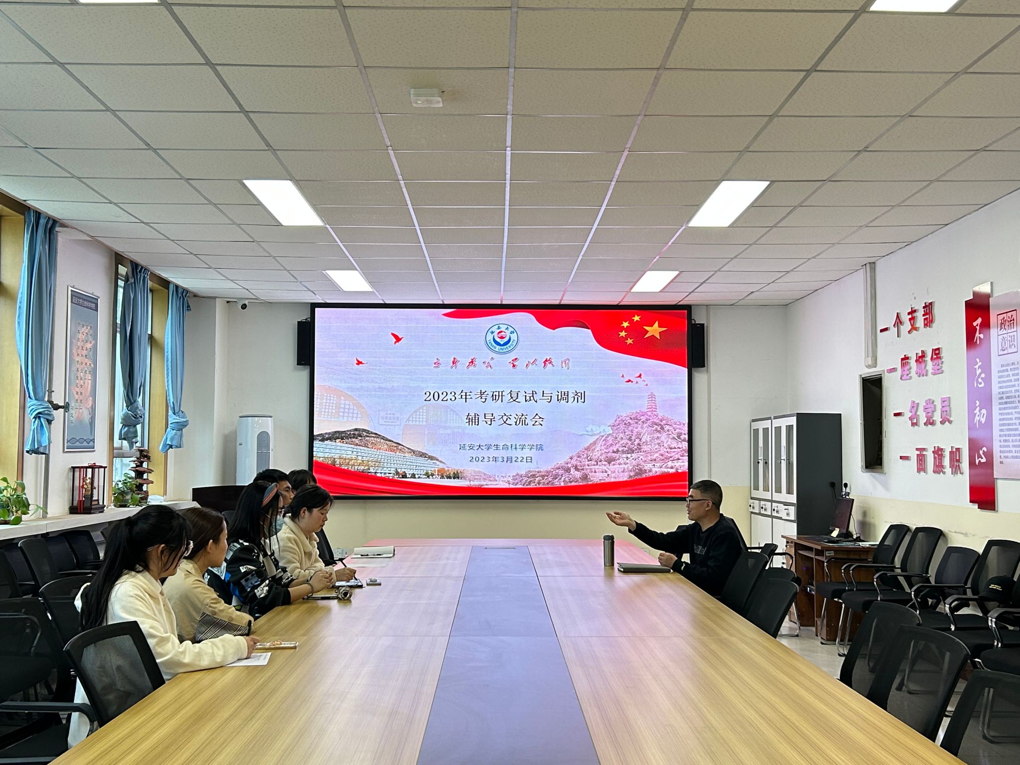 为做好考研指导服务工作、帮助公司学子从容应对研究生复试与调剂,3月22日下午,公司在公司会议室召开2023届毕业生考研复试、调剂工作辅导交流会。副经理陈国梁及公司2023届考研员工参加活动。
