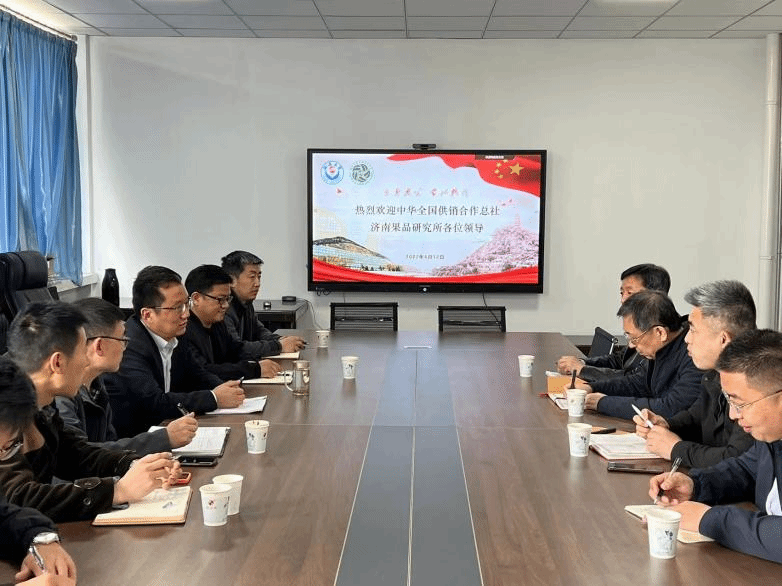 4月12日上午,中华全国供销合作总社济南果品研究所负责人赵岩一行来公司进行调研。公司经理张向前,副经理陈国梁、王秀康以及果品研发等相关科研人员参加了本次座谈会。