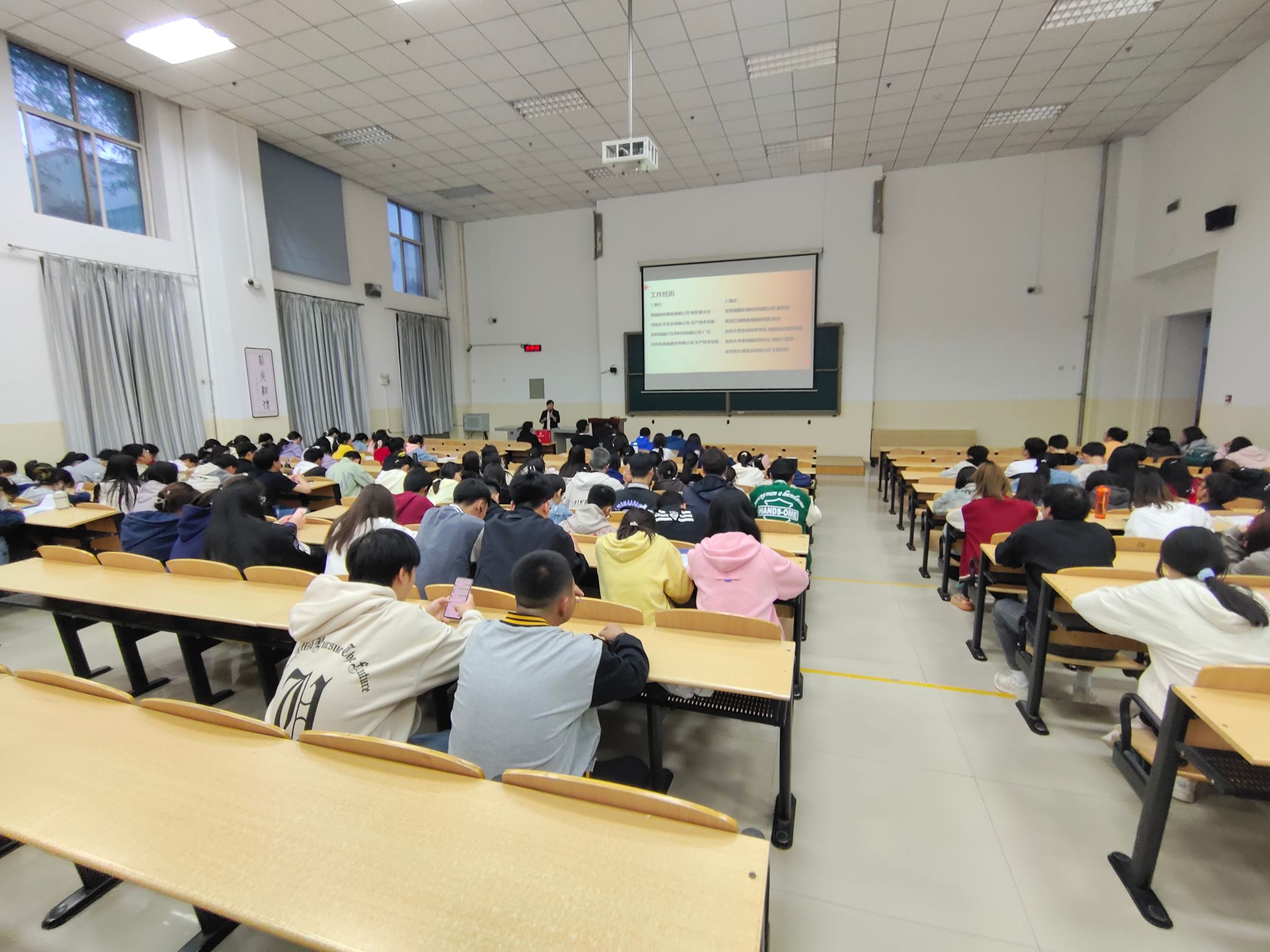 为进一步加强员工对行业状况的了解,切实解决员工对职业规划的疑惑,帮助同学们更好的做好职业生涯规划,5月11日晚7:30,公司在杨家岭校区玉章楼第五阶梯教室举办老员工就业指导与职业规划报告会。本次报告会特邀公司优秀员工、校外辅导员、延安菌舰生物科技有限公司高瑜董事长主讲。2020级、2021级、2022级本科生200余人参加了报告会,报告会由就业专职辅导员刘登强主持。