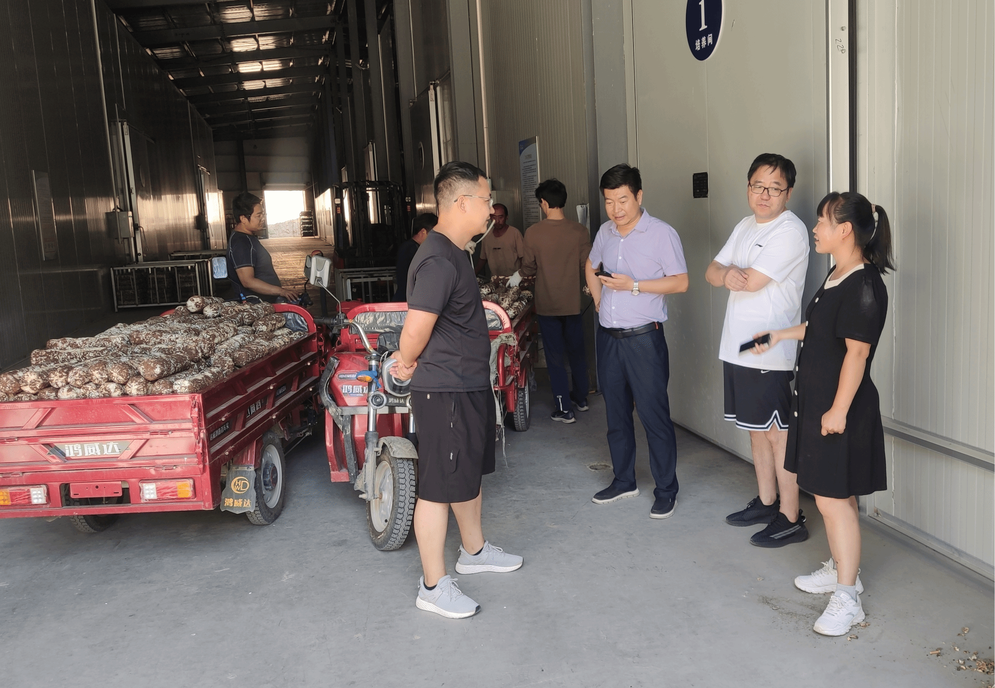 7月24日上午,公司“三区”科技人才服务队刘冲、高小朋、邓健、靳鹏飞等4人前往河庄坪镇食用菌产业园区进行食用菌生产情况调研和科技服务。在延安菌舰生物科技有限公司总经理高瑜的带领下,公司三区人才们详细了解了公司现阶段菌棒生产和销售情况,随后前往食用菌菌棒生产大棚,在棚里实地查看了当前菌棒生长情况,并就远距离运输过程中的菌棒存贮、香菇出菇条件控制等生产管理问题与负责人进行了沟通和技术指导。三区人才们在调研过程中还发现部分生产环节缺乏专业性工具等问题,通过现场交流和探讨,未来也会针对企业需求尝试改进和开发针对性的生产工具帮助解决实际难题。