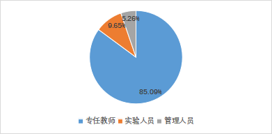 公司现有教职工114人,其中专任教师97人(图1,正高20人、副高39人)、实验技术人员11人(4名高级实验师、6名实验师、1名助理实验师)、行政管理人员6人,分别占总人数的84.82%、9.82%、5.36%(见图1),师生比为:1:5.7。2023年,公司张向前教授获宝钢优秀教师奖,王秀康教授获批陕西省本科育教学改革研究项目。