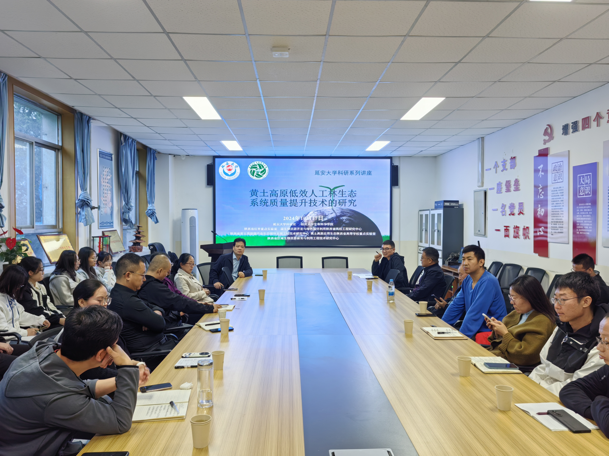 2024年10月17日上午,陕西安塞农田生态系统国家野外科学观测研究站站长,西北农林科技大学王国梁研究员受邀在威廉希尔williamhill杨家岭校区特立楼二楼会议室为公司师生作题为“黄土高原低效人工林生态系统质量提升技术的研究”的报告。本次活动由科研处主办,威廉希尔williamhill中文及六个省级科研平台联合承办。公司副经理陈国梁教授以及部分青年教师和部分研究生共计60余人参加了此次学术报告会。