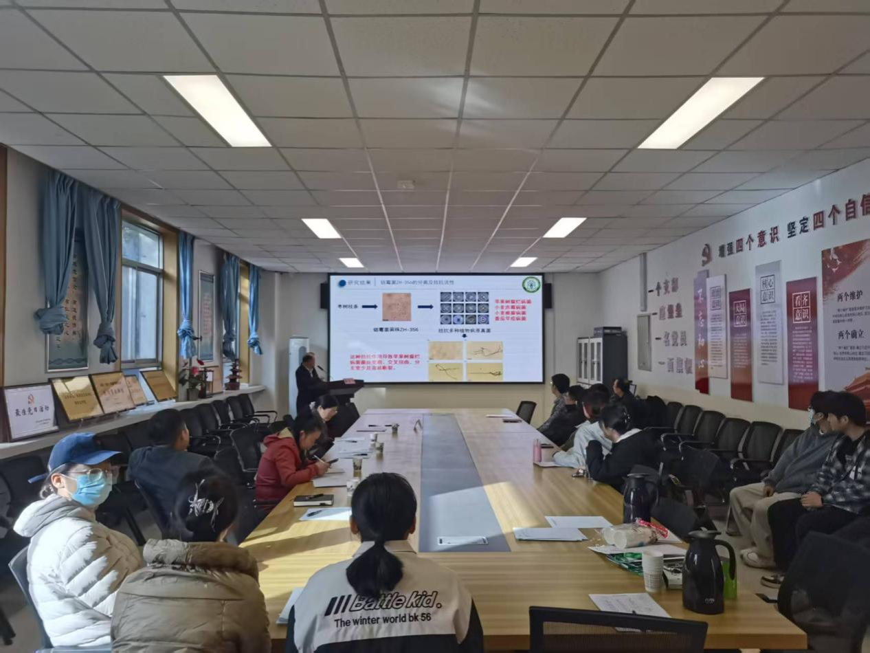 4月12日下午至4月13日上午主要进行青年学者报告和1项专家主旨报告,由重点实验室副主任林金水教授主持,中国农业大学李威教授作了题为“苹果砧木分子设计育种”的主旨报告。青年学者报告邀请了陕西省黄土高原资源植物研究与利用重点实验室16名青年学者进行学术报告。其中,曹朵副教授作了题为“天然多酚物质防治溃疡性结肠炎的药效物质基础和作用机制研究”的报告;李广伟教授作了题为“陕北山地苹果园食心虫嗅觉通讯的分子机制研究”的报告;李江文副教授作了题为“陕北地区人工林经济林凋落叶浸提液对豆禾牧草的化感效应研究”的报告;史蓓蓓博士作了题为“小麦14-3-3蛋白TaGF14a的抗条锈病功能分析”的报告;杨琪博士作了题为“黏虫蜕皮触发激素及其受体功能研究”的报告;李祥东博士作了题为“保护性耕作背景下蚯蚓对土壤结构和养分动态的影响”的报告;贾宏宏博士作了题为“森林生态完整性与生态系统服务相互关系及影响因素研究”的报告;李伯辽博士作了题为“苹褐带卷蛾两种普通气味结合蛋白对性信息素和寄主植物挥发物的选择性”的报告;林金水教授作了题为“链霉菌ZH-356的植病生防作用”的报告;徐成楠副教授作了题为“陕西省苹果新病害黑点病和果腐病病原分类鉴定及致病性研究”的报告;党峰峰副教授作了题为“水杨酸和茉莉酸交替提高辣椒抗病的调控机制”的报告;毛仁俊副教授作了题为“决明种质资源的收集与评价利用”的报告;艾宁副教授作了题为“复合侵蚀区山水林田湖草沙多维梯级协同治理技术研发”的报告;白群伟博士作了题为“靶向EMS1创制温度敏感雄性不育种质”的报告;赵继荣副教授作了题为“苹果糖酸性状分析和相关基因挖掘”的报告;程国亭副教授作了题为“番茄果实风味品质综合评价”的报告。通过此次学术报告会,有效拓宽了大家的学术视野、促进合作交流、开拓创新思维。