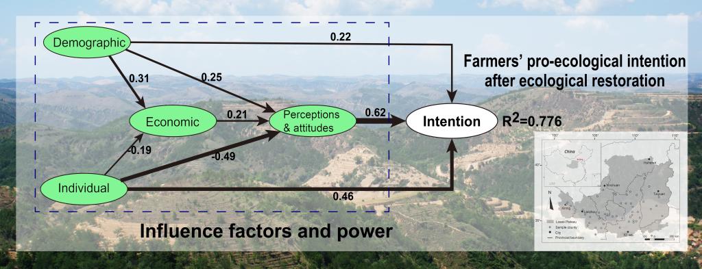 该研究基于在黄土高原地区开展的2000余户农民家庭调查,在计划行为理论(TPB)的基础上,利用结构方程模型(SEM)系统研究了农户家庭人口因素、经济条件、个人特征、土地特征、行为感知和态度对其保护生态成果意向的影响,结果证明农户对采取行为能力的感知和对待政策的态度是影响其保护行为最主要的因素,并作为连接其他因素的纽带对其保护行为产生影响。研究提出政府和管理者应重视通过提高农民的行为能力(如技能培训)来增强农民保护生态成果的意向,结果为环境脆弱区生态工程的可持续管理提供了科学依据。