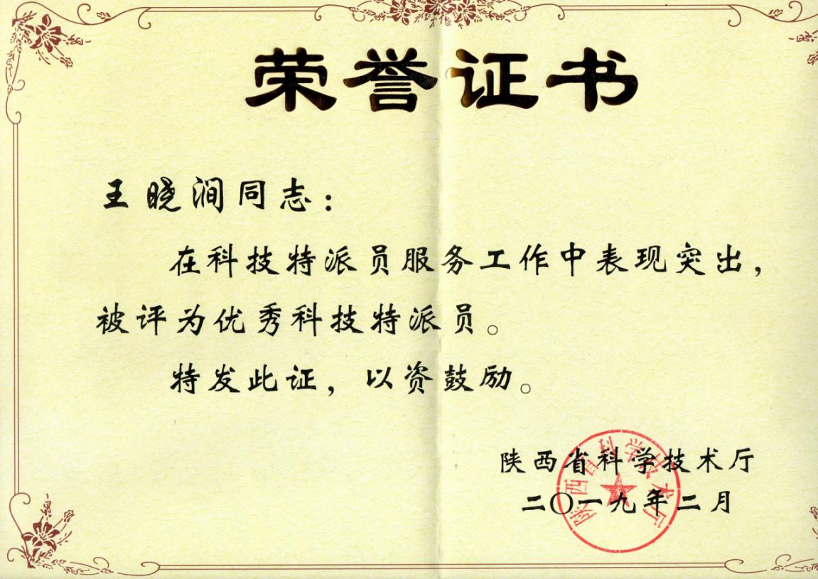 2019年2月25-27日,陕西省科技扶贫暨科技特派员工作推进会在商洛市商州区召开。省科技厅对2018年全省科技特派员工作组织管理先进单位和优秀特派员进行了表彰。公司王晓涧副教授在科技特派员服务工作中表现突出,被评为优秀科技特派员。