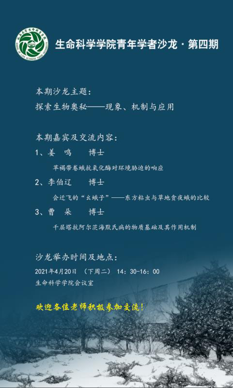 2021年4月20日,以“探索生命奥秘——现象、机制与应用”为主题的第四期青年学者沙龙活动在公司会议室顺利举行。本次活动前期筹备工作及现场主持由张晓曦副教授和南国卫博士执行,公司青年博士、教师等近30人参加了研讨活动。