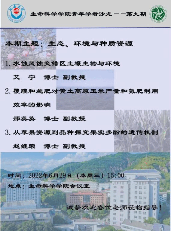 本次沙龙活动邀请到了公司新晋副教授艾宁博士、邢英英博士、赵继荣博士进行报告。艾宁博士做了题为“水蚀风蚀交错区土壤生物与环境”的专题报告,他从水蚀风蚀交错区生态环境现状出发,阐述了水蚀风蚀交错区土壤、土壤生物与环境的耦合关系,并针对研究区土壤质量状况做了定量评价。之后,邢英英博士以“覆膜和施肥对黄土高原玉米产量和氮肥利用效率的影响”为题,对黄土高原玉米的研究现状、生产需求以及如何通过覆盖、增加种植密度和提高氮肥利用效率来达到增产提质的目的等方面进行了详细梳理和总结。最后,赵继荣博士以“从苹果资源到品种探究果实多酚的遗传机制”为题,针对苹果产业目前存在的诸多问题,另辟蹊径,通过解析不同品种苹果多酚含量,深入挖掘了单个多酚相关基因的表达水平在苹果多酚合成中的重要作用,并对苹果资源和品种之间的关系做了深入探究。