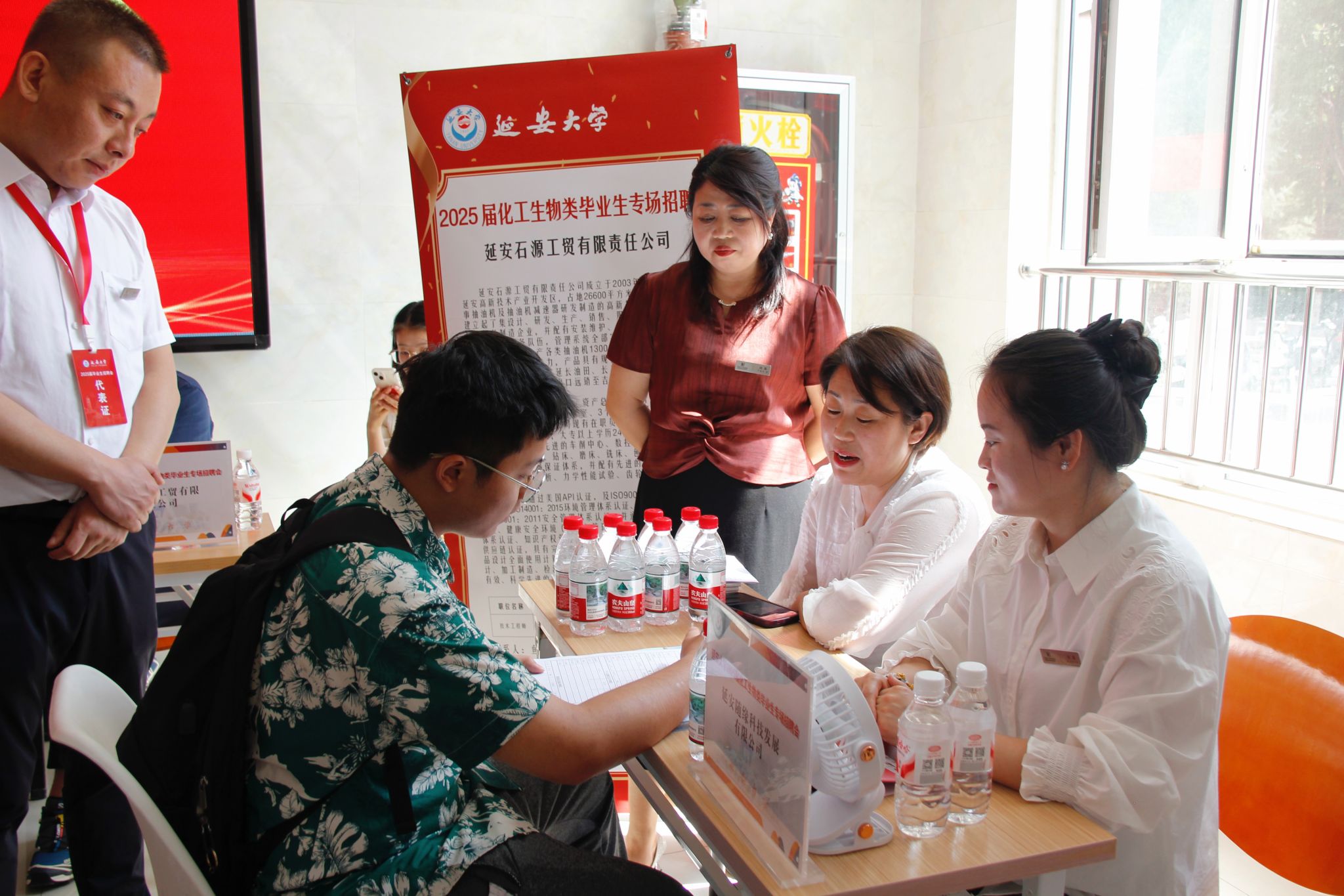 本次招聘会吸引了包括陕西鸿昊环保有限公司、延安华普检测技术有限公司、韩城市桢州教育管理中心、延安菌舰生物科技有限公司在内的19家优质企业参会,提供就业岗位1200余个,覆盖生物、化工、管理、电子自动化等多个专业领域。经统计,共有80余名毕业生与用人单位达成初步就业意向。