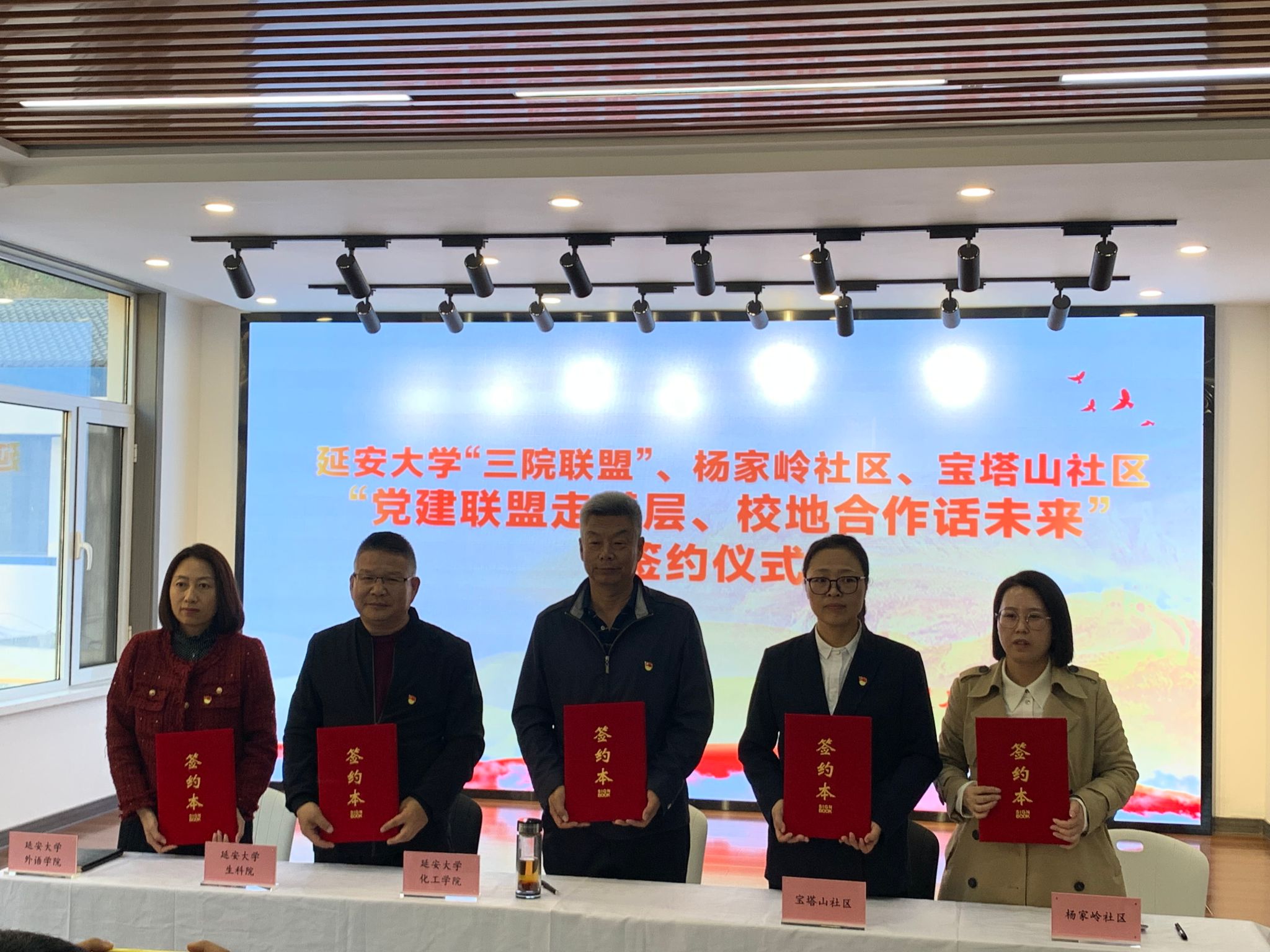 接着, 威廉希尔williamhill“三院联盟”、杨家岭社区、宝塔山社区“党建联盟走基层、校地合作话未来” 签约仪式在宝塔山社区会议室举行。仪式由梁艳主持。各单位党建负责人介绍了本单位特色和亮点党建工作,签订了《“党建联盟走基层 校地合作话未来”合作协议》,一致表示将充分发挥各方资源优势、调动各方积极因素,为搭建实践育人平台、助力基层社会治理、构建特色党建机制贡献力量。