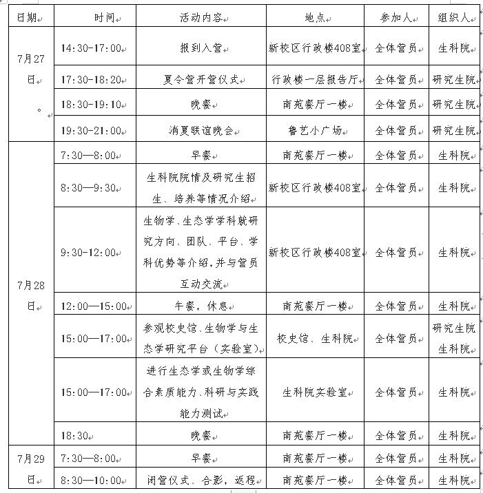 (2)实施范围。今年公司实施暑期夏令营活动有马克思主义公司、政法与公管公司、物理与电子信息公司和生命科公司四个公司,每个公司夏令营招生营员50人;报考其他公司专业的考生可通过网络和相关公司联系,申请“创新计划”资格。